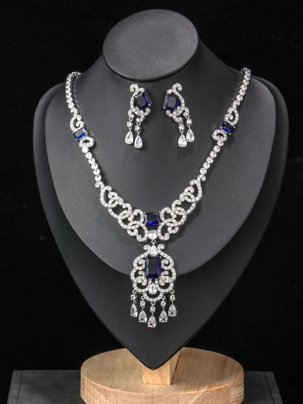 💎 Gemstone Necklace Pendant with Earrings Set 🎁