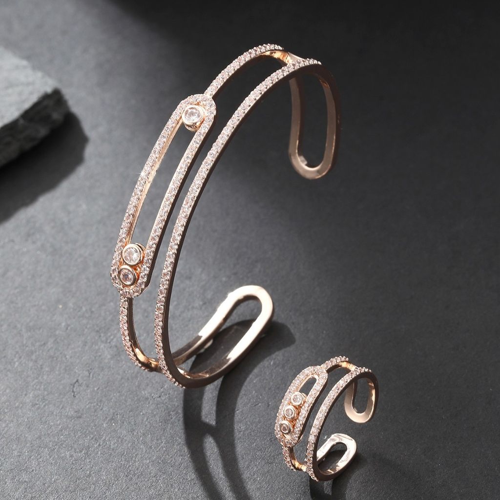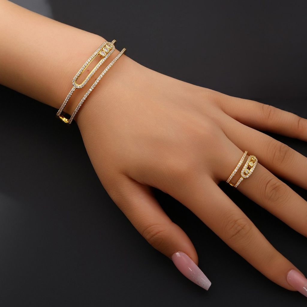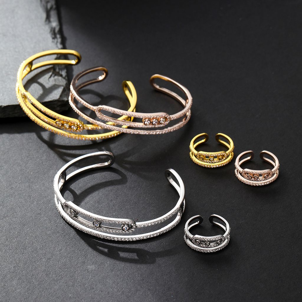 💎 Simple Hollow Zircon Bracelet Ring Set with Three Removable Zircons 💍