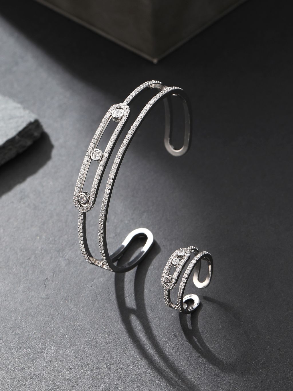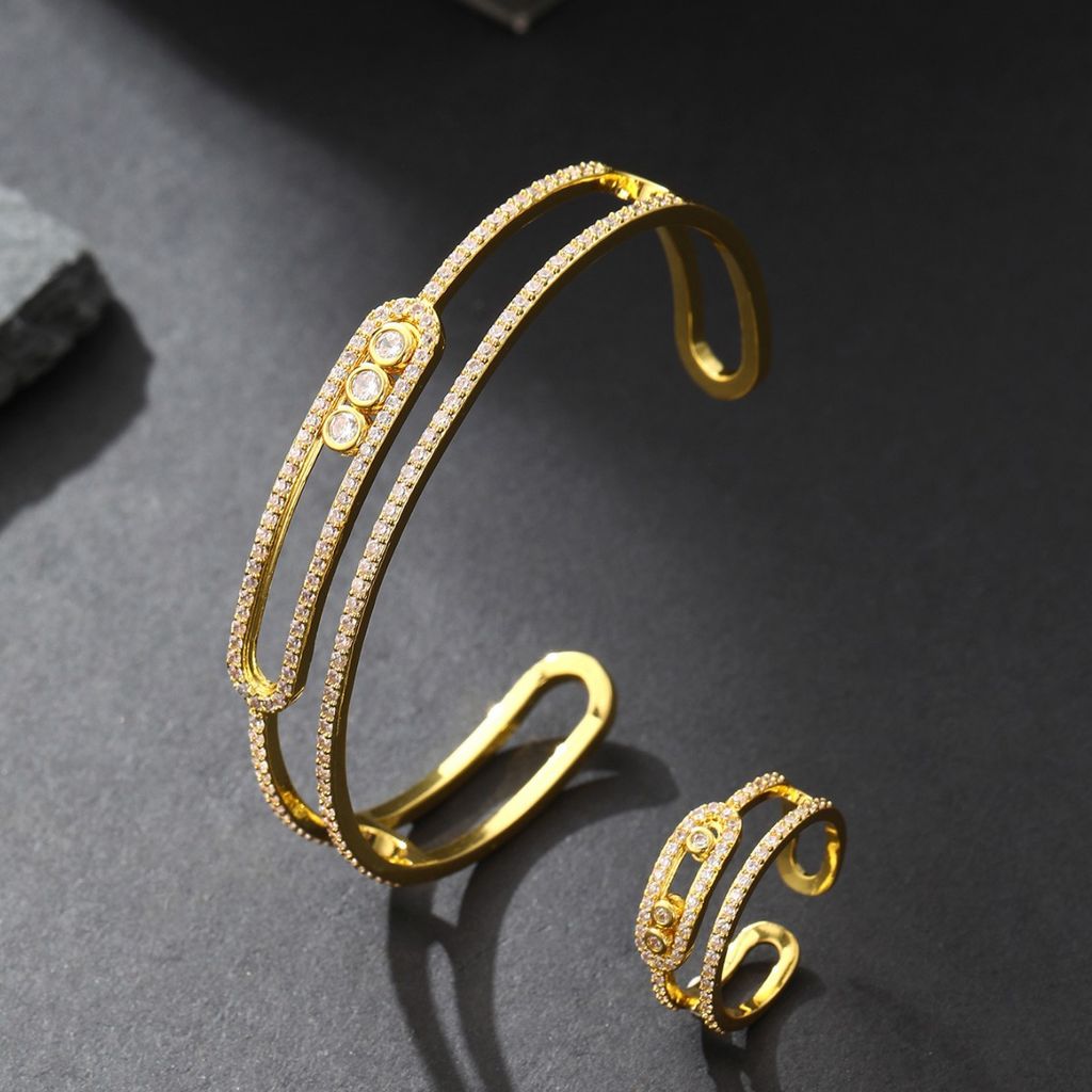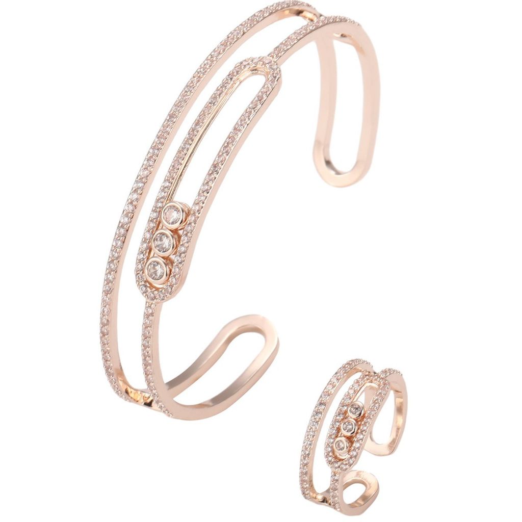 💎 Simple Hollow Zircon Bracelet Ring Set with Three Removable Zircons 💍