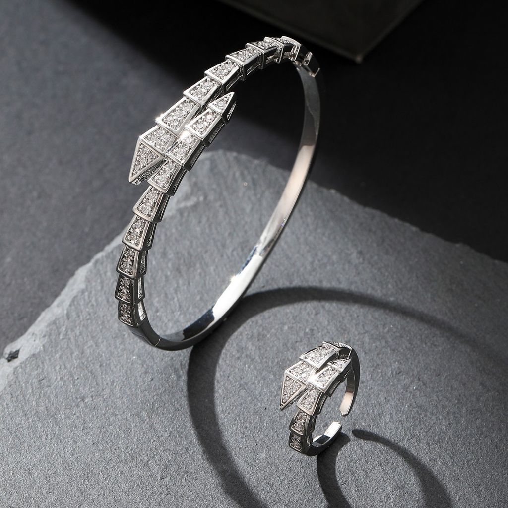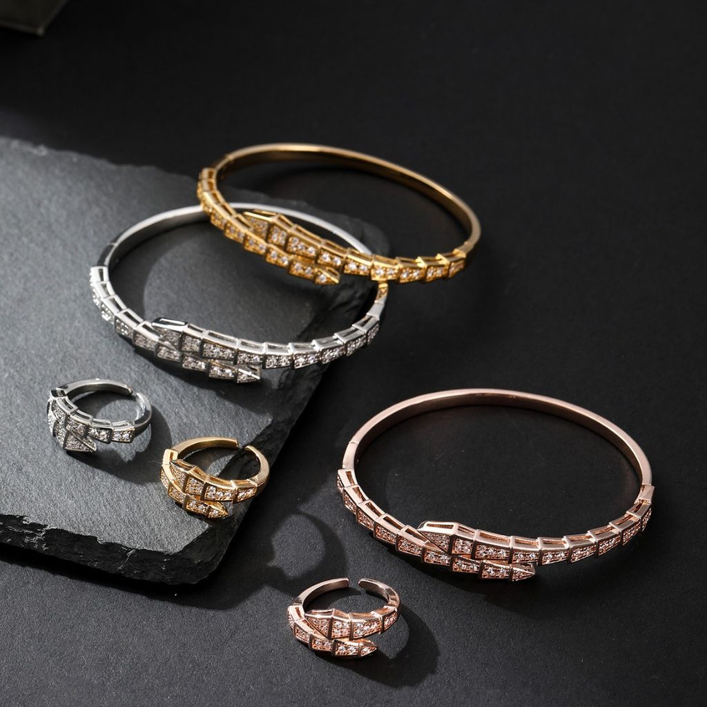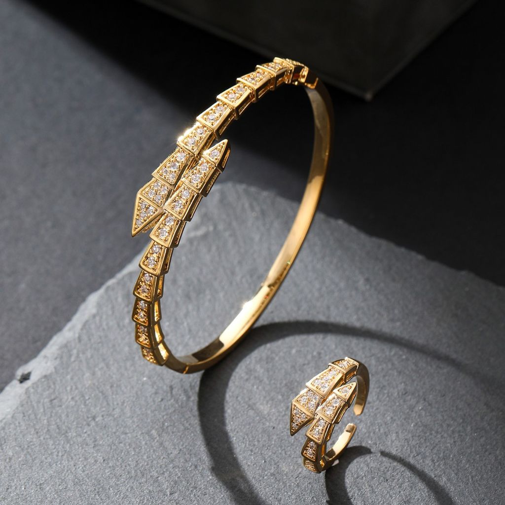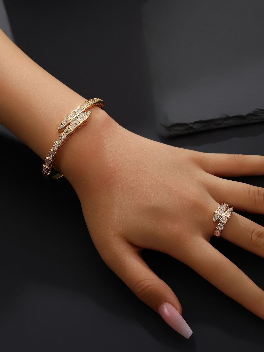 💎 Snake-Shaped Zircon Bracelet and Ring Set 💍